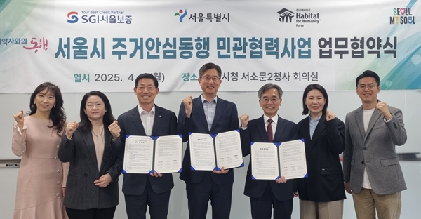 서울시는 이달 7일 서울시청 서소문2청사에서 서울보증보험(SGI), 한국해비타트와 함께 주거안심동행 민관협력사업 업무협약을 체결했다고 밝혔다.