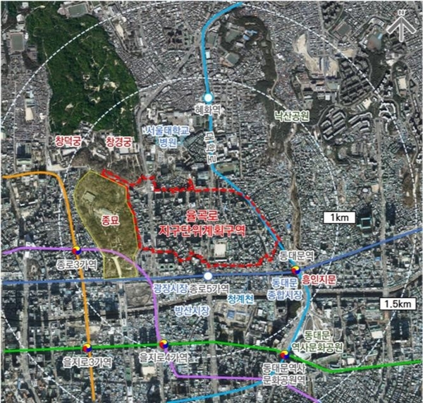 대상지는 종로구 이화동ㆍ충신동ㆍ연건동ㆍ연지동 일대로 규모는 44만6340㎡에 달한다. 주요 간선도로인 대학로와 율곡로에 인접하고 남쪽으로 지하철 1호선 종로5가역과 1ㆍ4호선 환승역인 동대문역이 입지하고 있어 대중교통 접근성이 양호한 편이다. 종묘, 창경궁 등 문화재와도 가깝다.