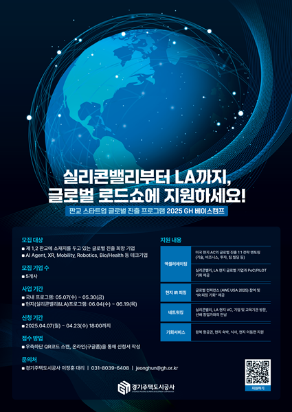 [아유경제=조명의 기자] 경기주택도시공사(GH)가 지난해에 이어 벤처기업들의 해외투자 유치활동을 지원하는 `GH 베이스캠프 사업`을 추진한다.