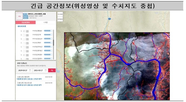 긴급 공간정보는 국토위상영상과 항공사진을 분석한 고해상도 영상이다. 국토지리정보원은 2020년부터 각종 재난 발생 시 해당 자료를 중앙부처와 지역자치단체에 제공 중이다.
