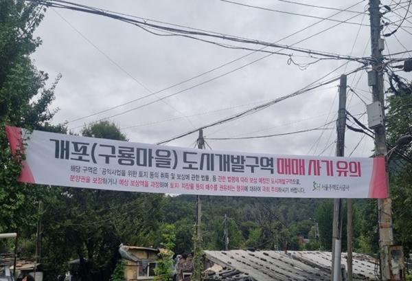 [아유경제=조명의 기자] 서울주택도시공사(SH)가 최근 서울 강남구 개포동 구룡마을 도시개발구역과 관련해 분양권ㆍ입주권 불법 거래에 대한 주의를 당부했다.