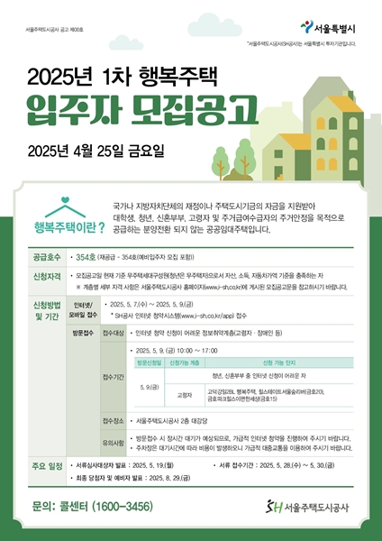 [아유경제=조명의 기자] 서울주택도시공사(SH)는 최근 강동구 고덕온빛채 등 354가구의 행복주택 입주자(서울리츠 행복주택 포함)를 모집한다고 밝혔다.