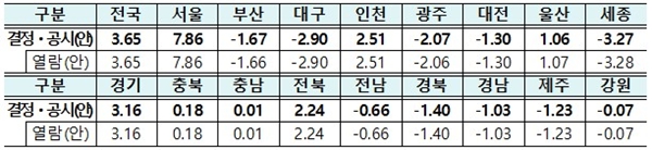 올해 전국 공동주택 공시가격의 전년 대비 변동률은 공시가격안과 동일한 3.65%로 나타났다.