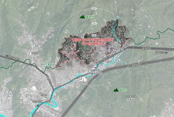 대상지는 북한산국립공원 인근 종로구 평창동 400~500 일대로 면적은 71만9287㎡에 달한다. 자연환경을 훼손하지 않는 범위에서 최소한의 개발이 가능토록 2013년 지구단위계획을 수립한 바 있다.