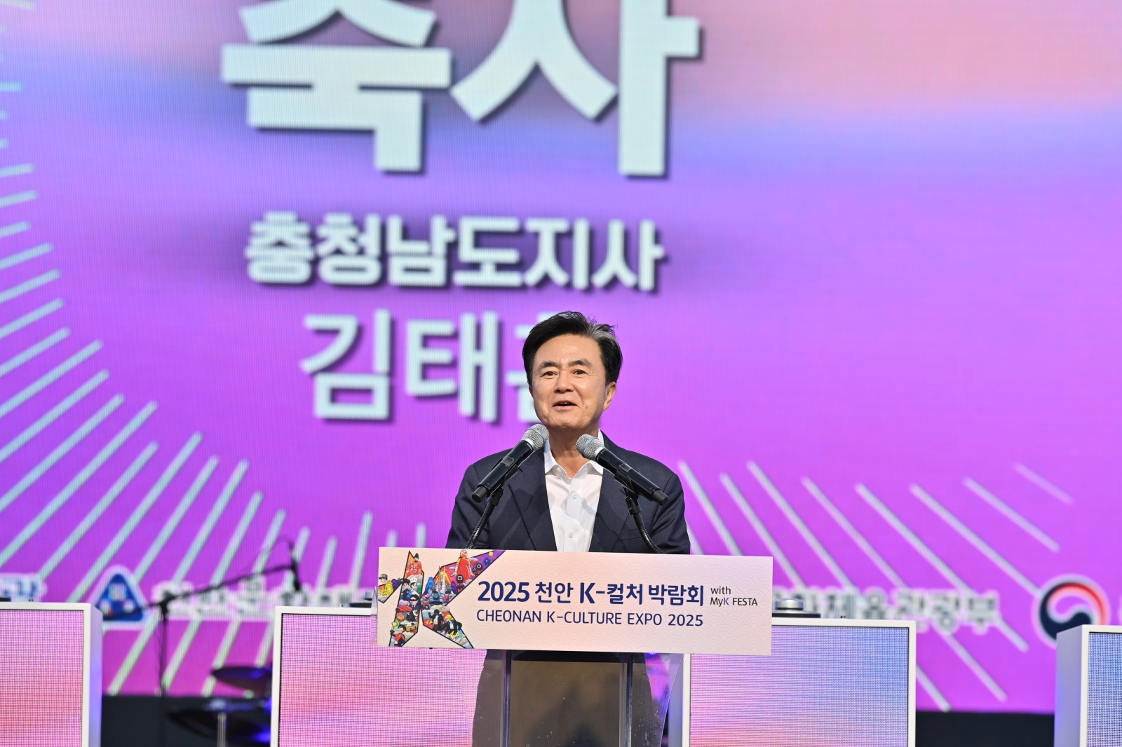 김 지사는 4일 천안 독립기념관에서 열린 ‘2025 천안 케이(K)-컬처박람회’ 개막식에 참석해 “케이(K)-컬처박람회가 세계박람회로 성장하고 천안이 케이(K)-컬처의 중심 무대로 자리매김하도록 아낌없이 지원할 것”이라고 강조했다.