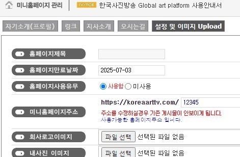 미니홈을 분양받으세요. 전 세계에 뉴스로 널리 홍보할 수 있습니다. 전시회소식 포트폴리오 창작활동 등을 장르불문 모든 예술 총망라 올리시면 됩니다. 회사나 단체는 사업에 필요한 홍보를 널리 알려도 좋습니다.