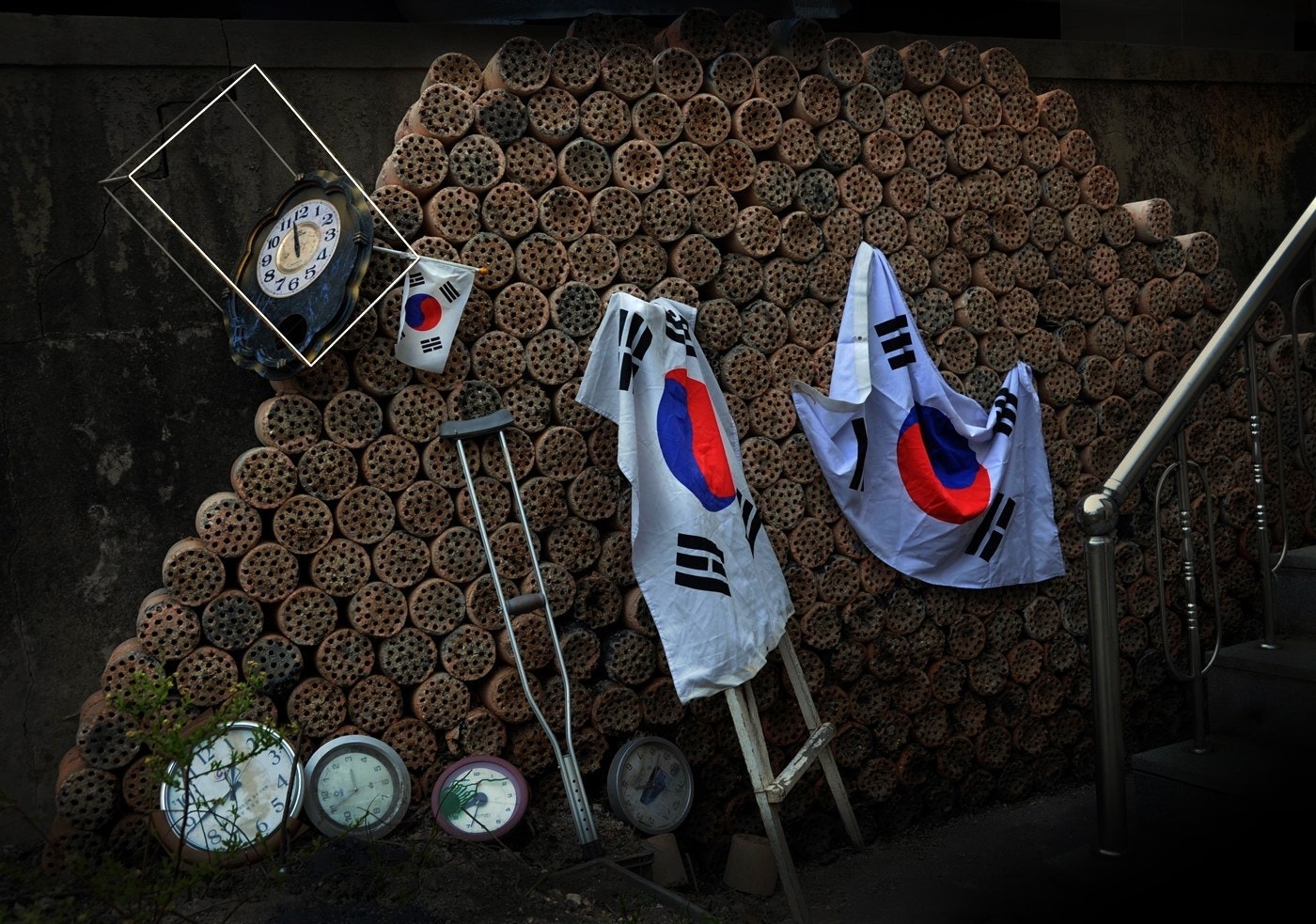 오후2시: 김가중 아트사관 (성북구 정릉3동 833-9) 대중교통은 마을버스6번 넓은 마당 우천불구 피아노다비식 흔적, 그을린 검은 피아노의 뼈대에 소품배치 촬영 연탄재 성벽에 소품배치 촬영, 항아리 성벽에 소품배치 촬영