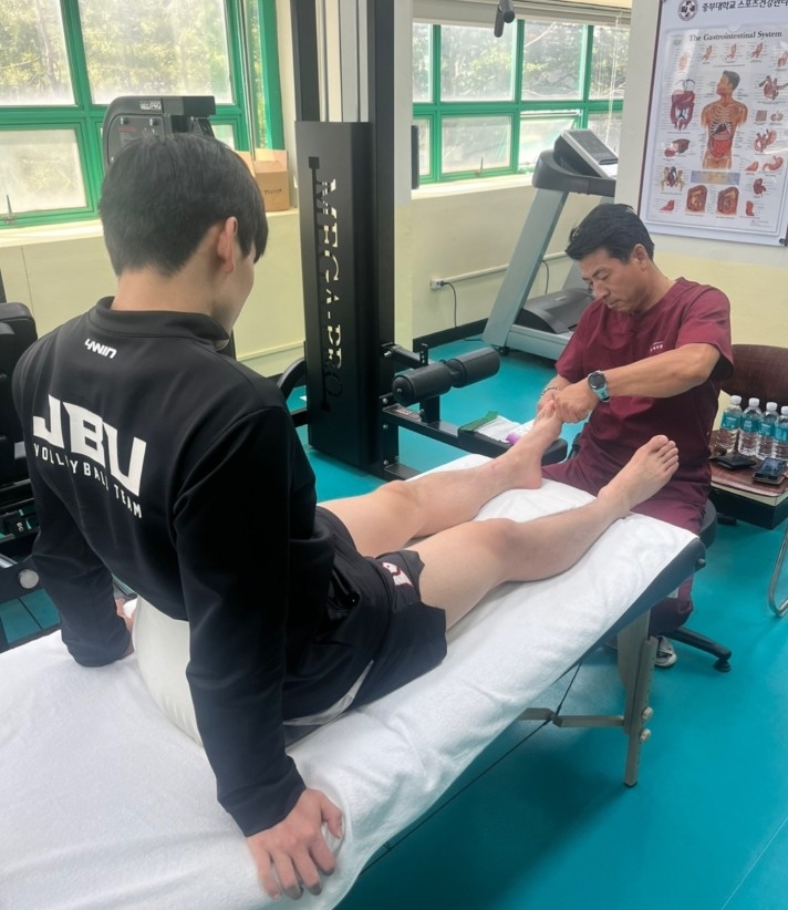 이번 승리의 핵심 요인은 경기 전 중부대 배구부 전체 20여 명에게 적용된 K-REPOS 교정기법의 과학적 효과였다. 아르테힐링센터의 백석균 원장이 개발한 이 교정법은 발 건강과 신체 정렬을 통해 전반적인 운동 능력을 향상시키는 것으로 알려져 있다.
