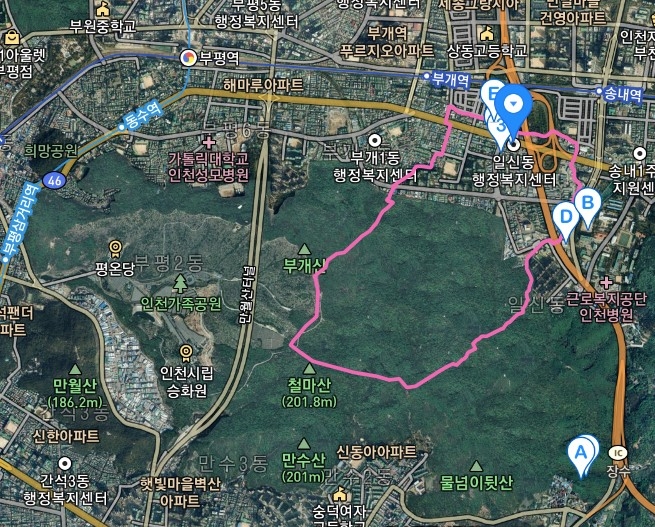 위 부평6동 행정구역과 부개산(부개산 등반을 위하여는 부평6동 만월산 터널위를 이용하여야 한다.