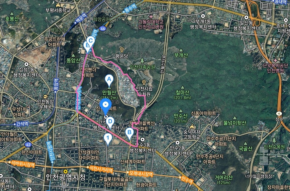 남동구 관할인 만수산과 만월산이 접해있다.