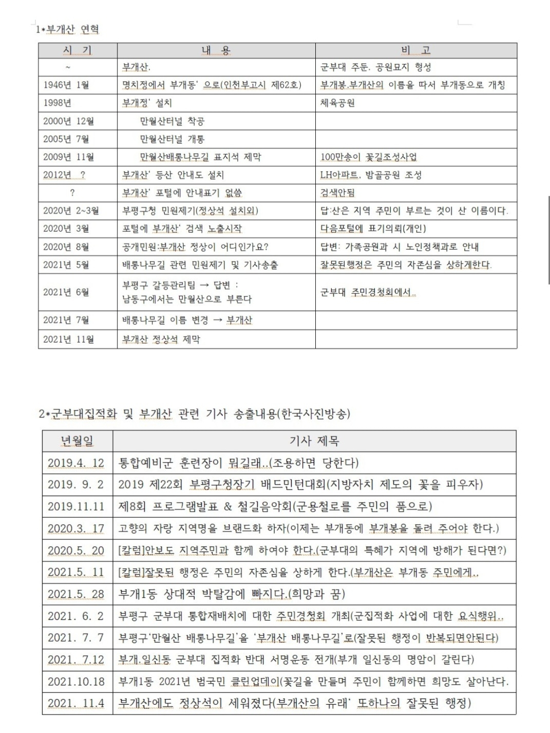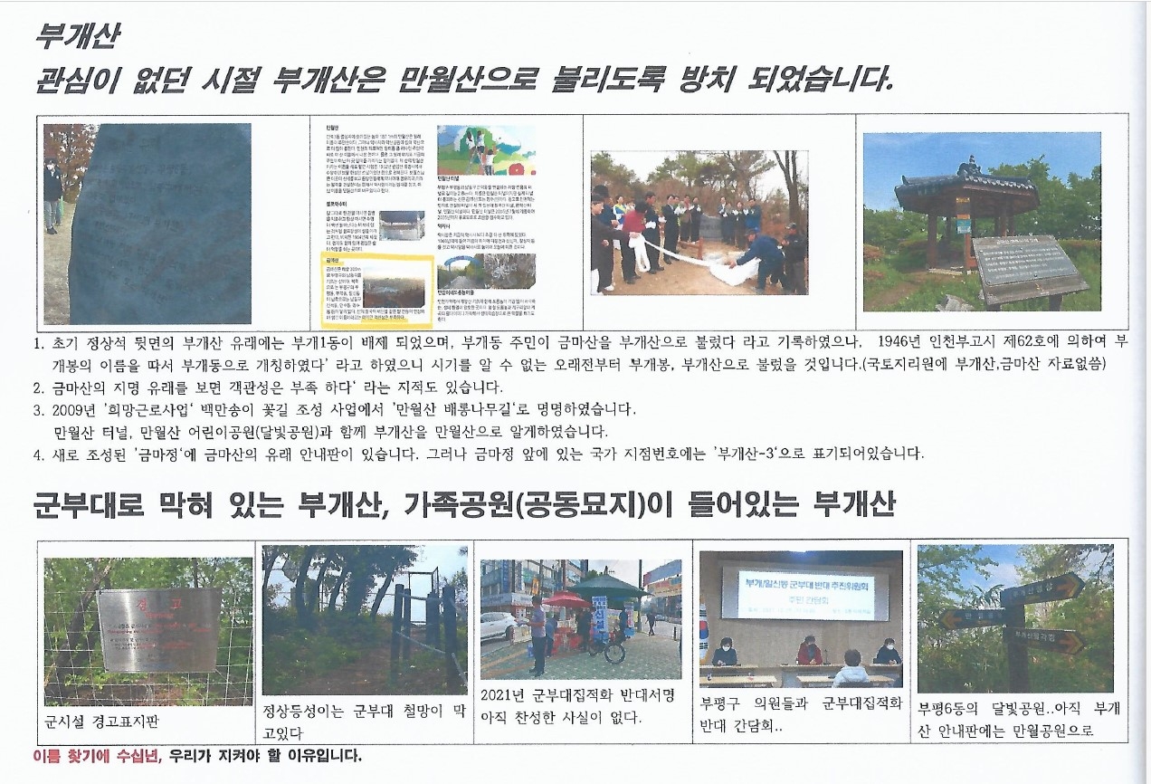 부개동 주민은 #군부대집적화 및 군부대현대화의 정책을 통하여 부개산을 유용하게 활용할 방법을 기대하고 있다.