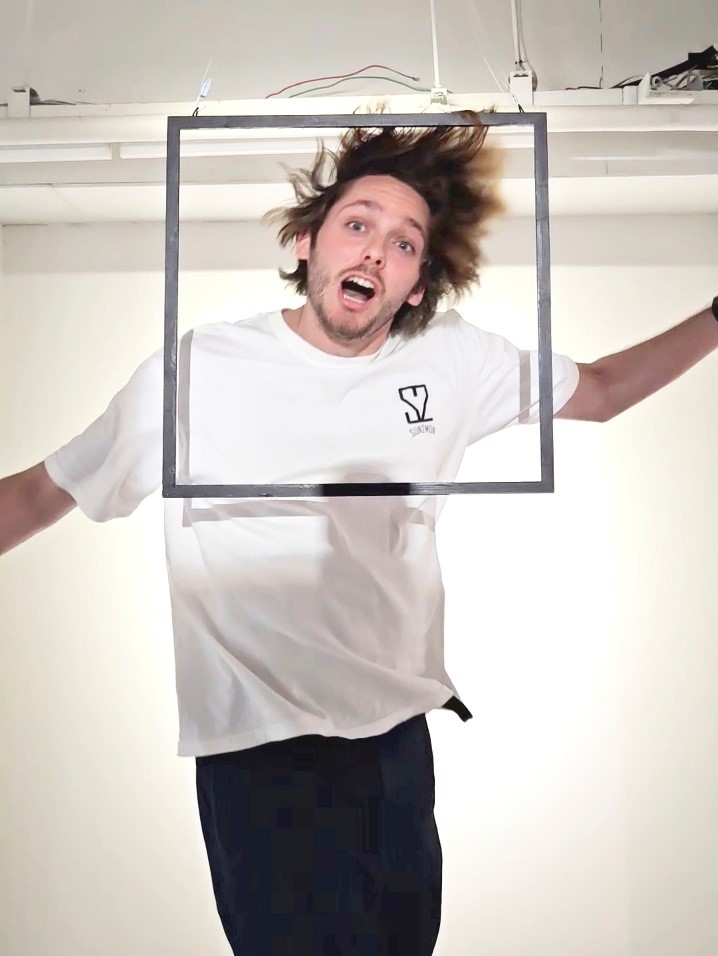 전시작품중 Le Cadre(Frame)은 높게 설치된 빈 액자 안으로 다양한 사람들이 점프하는 순간을 촬영한 기존 작가의 작품으로, 실제 전시형태는 전시장 내에 설치된 액자에서 관람객들이 점프하는 장면을 촬영한 후 기존 작품들과 함께 설치된 스마트디스플레이 블루캔버스(Bluecanvas)로 바로 송출하는 방식의 설치미술로 시도되어 참석자들이 직접 참여하며 전시의 일부가 되었다.