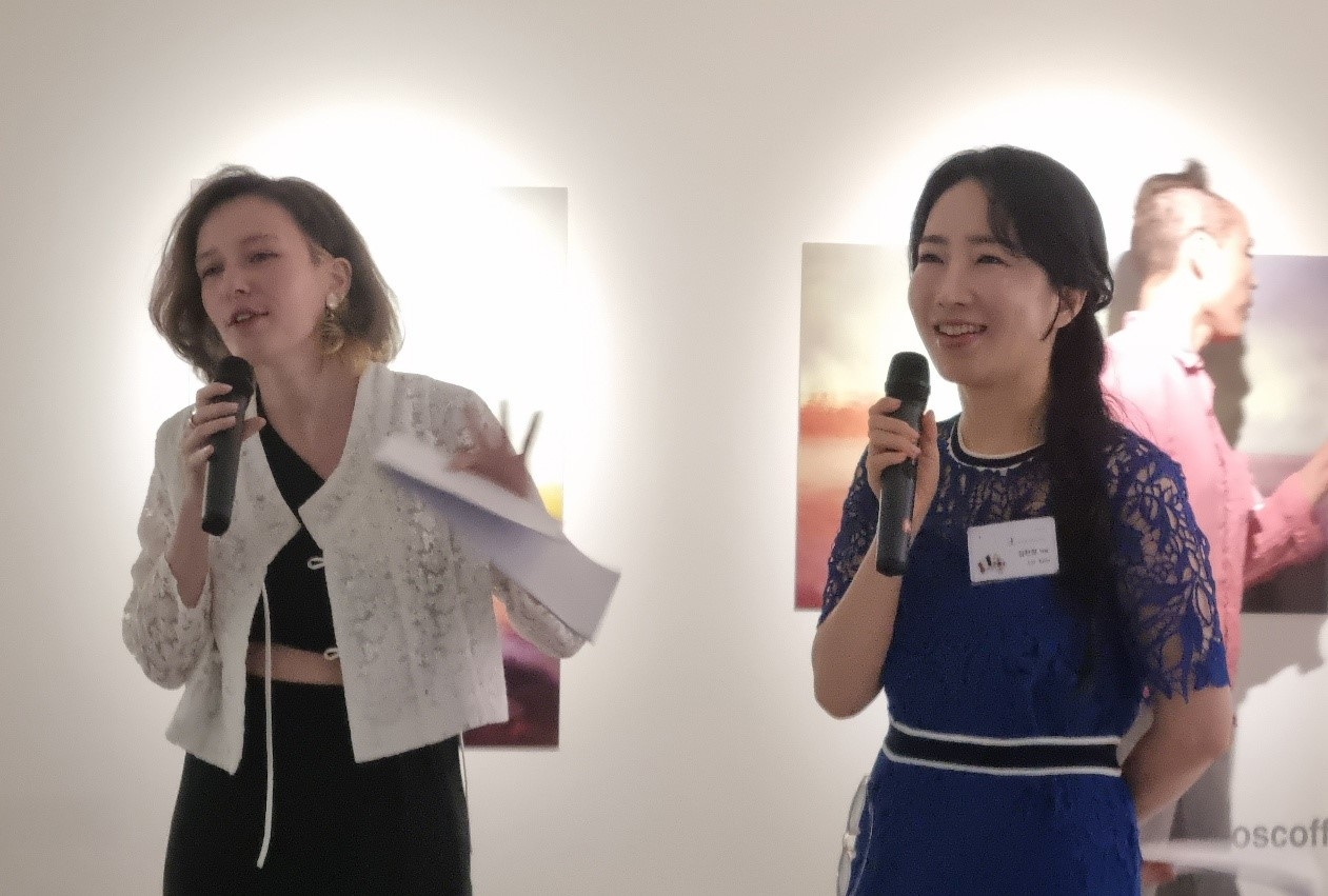 행사 진행중인 잔느 듀브레송 작가와 케이리즈갤러리 리즈 김 대표