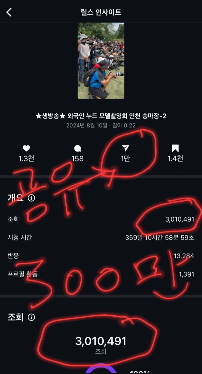 외국인 누드모델 촬영회 현재 시간 인스타 조회수가 한 달도 안 되서 200만뷰에서>>>300만 뷰 넘었습니다 1000만(천만)까지 갈것 같아요 전세계적으로 누드 퍼포먼스를 인스타에서 생방송한게 유일무일해서 폭발적인 같아요 링크 공유 해간건만 1만회가 넘었습니다