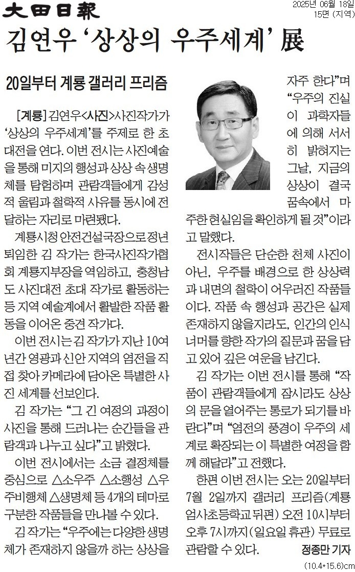 사진작가 김연우 초대전 ‘상상의 우주세계’ 계룡갤러리 프리즘