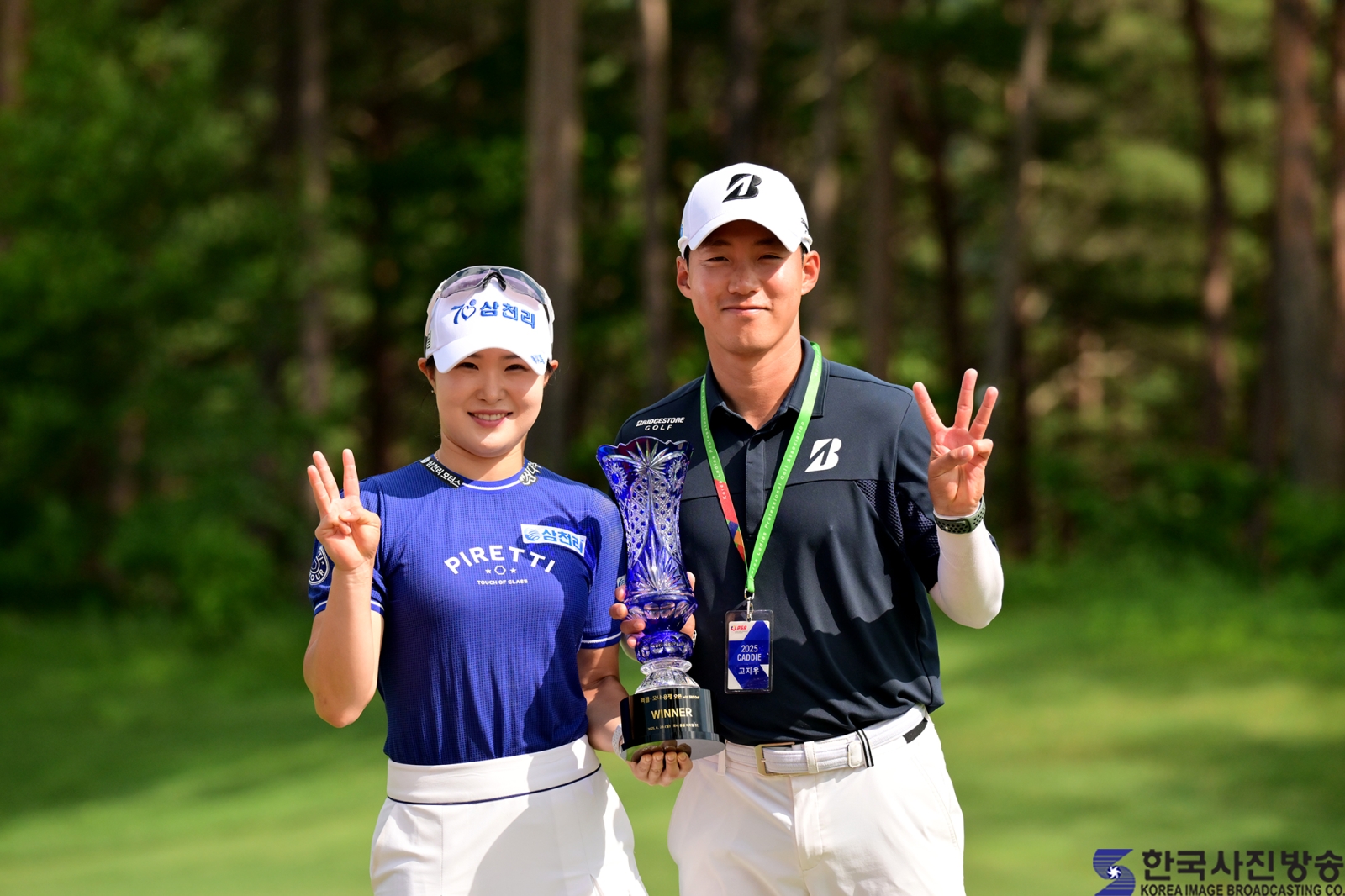 고지우 프로가 함께 경기에 참가한 캐디와 우승 기념 촬영을 하고있다.