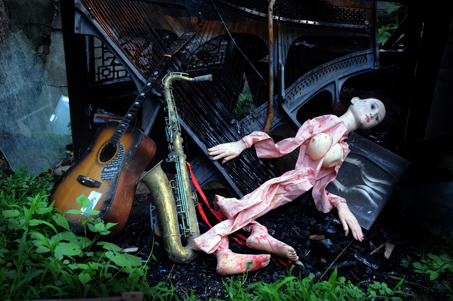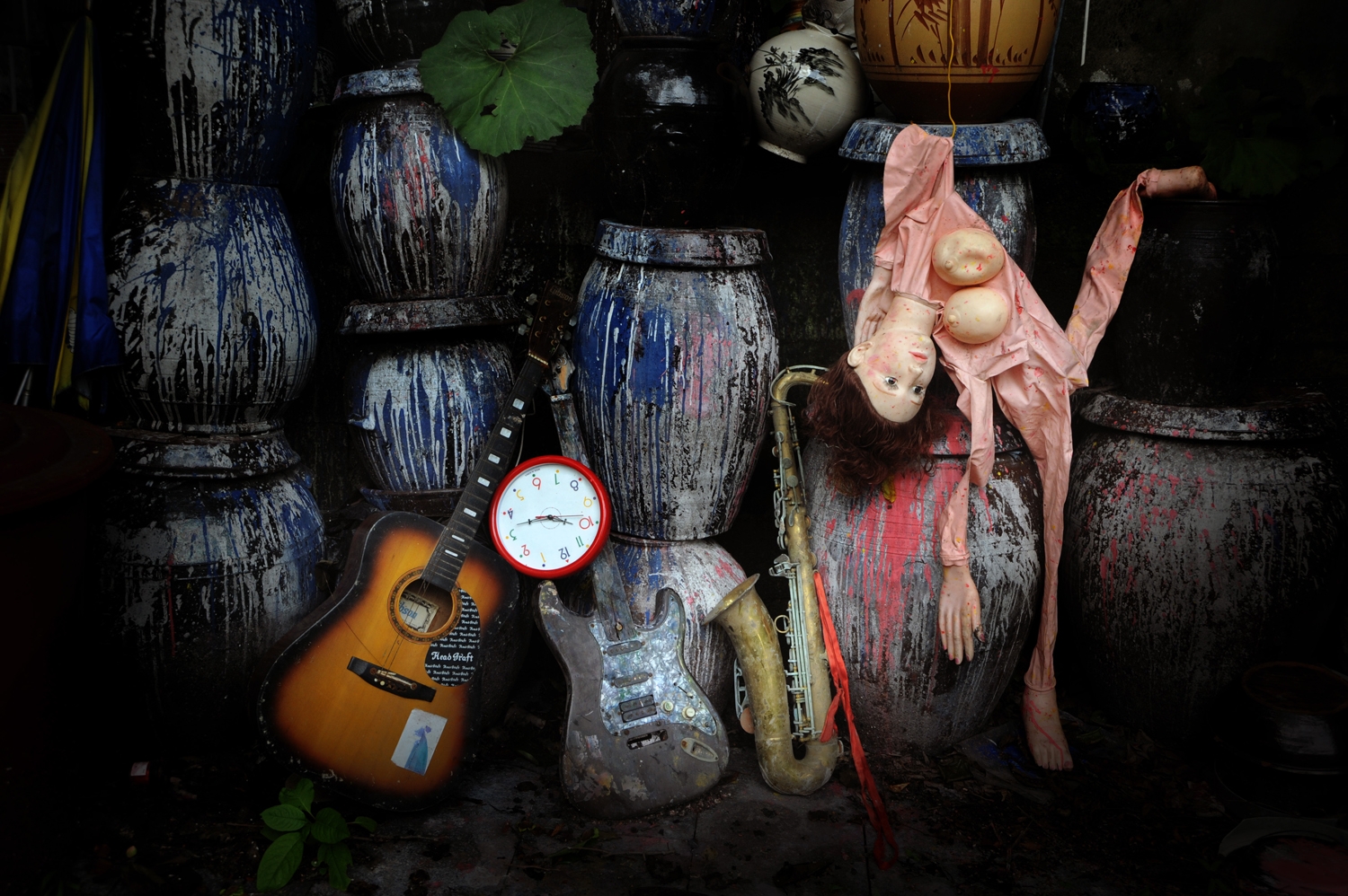 오후3시: 불탄 피아노와 누드, 연탄재와 누드, 항아리와 누드, 그리고 새빨간 한복