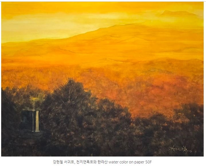 강현철 서귀포, 천지연폭포와 한라산 water color on paper 50F