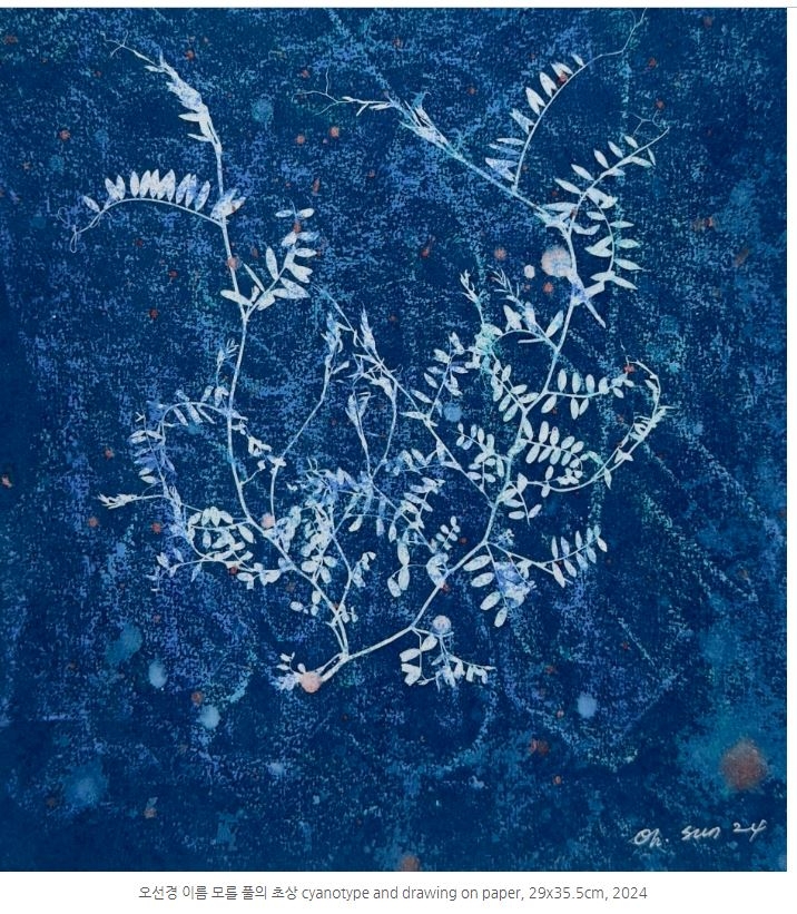 오선경 이름 모를 풀의 초상 cyanotype and drawing on paper, 29x35.5cm, 2024
