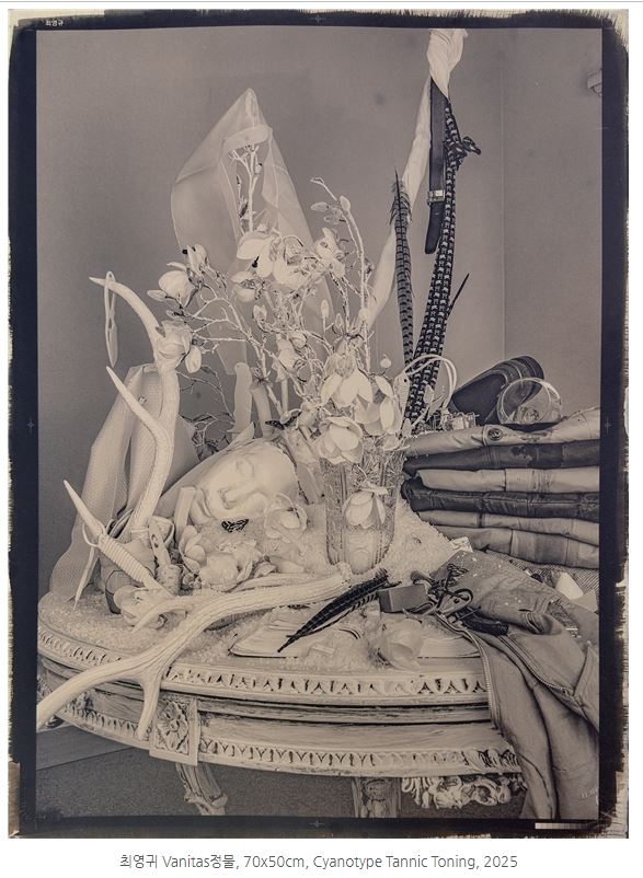 최영귀 Vanitas정물, 70x50cm, Cyanotype Tannic Toning, 2025