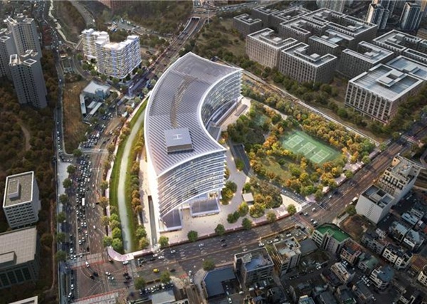 해당 센터는 위례지구 내 도시지원시설 용지 4만9308㎡를 대상으로, 지하 5층~지상 12층 규모의 교육연구ㆍ업무시설로 조성될 예정이다. 건물은 건축면적 1만7916㎡(축구장 2.5배)ㆍ연면적 25만2270㎡로, 대지의 형상에 순응하는 유선형 조형미를 반영해 설계됐다.