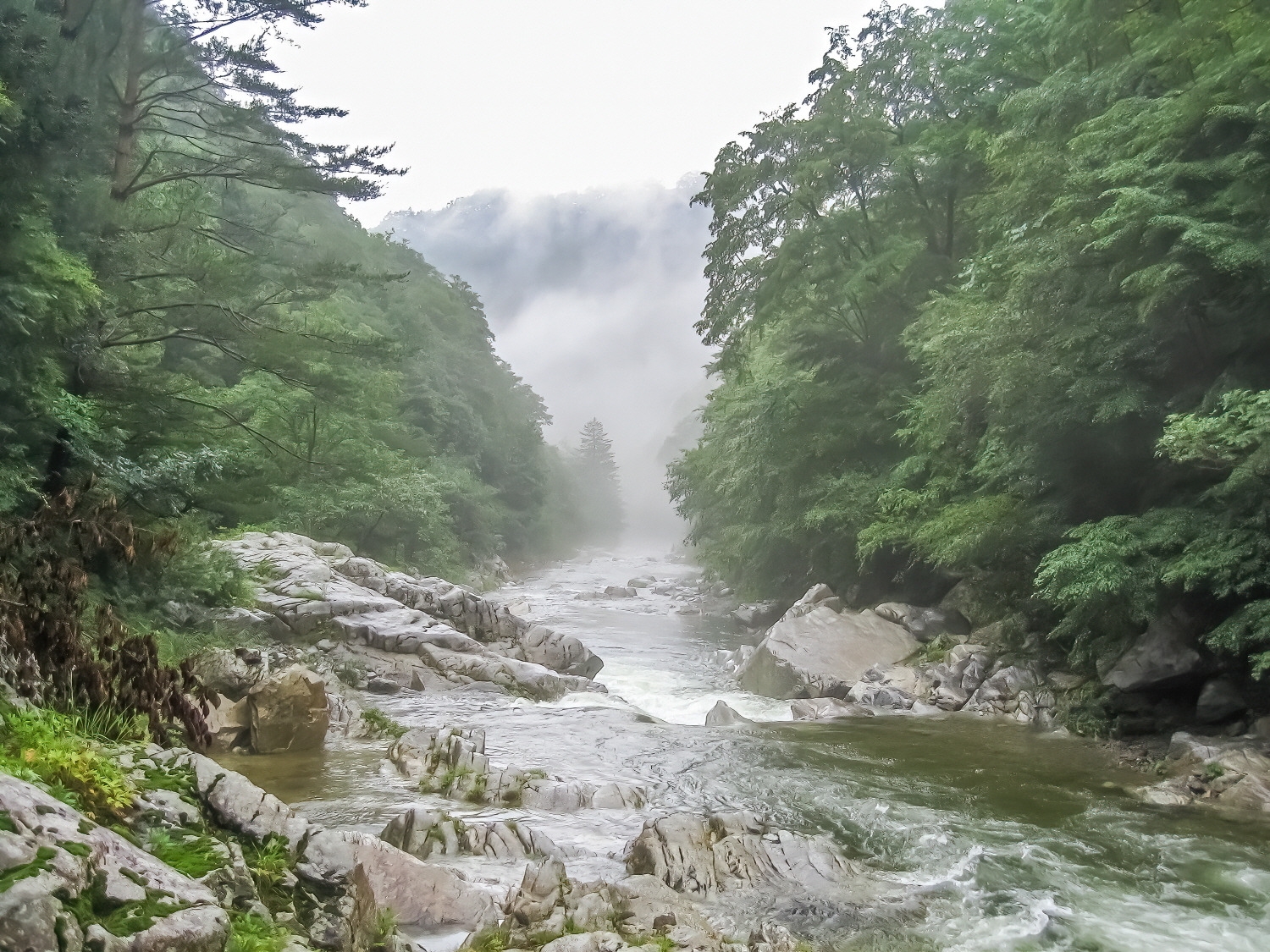 강원도 인제군 방태산 계곡은 우리나라에서 몇 안되는 오지이다. 계곡의 아름다운 비경과 맑은 물로 원시림에 온 느낌을 갖게 하는 곳이다. 한 여름에도 계곡물이 너무 차가워 더위를 느낄 겨를이 없다.