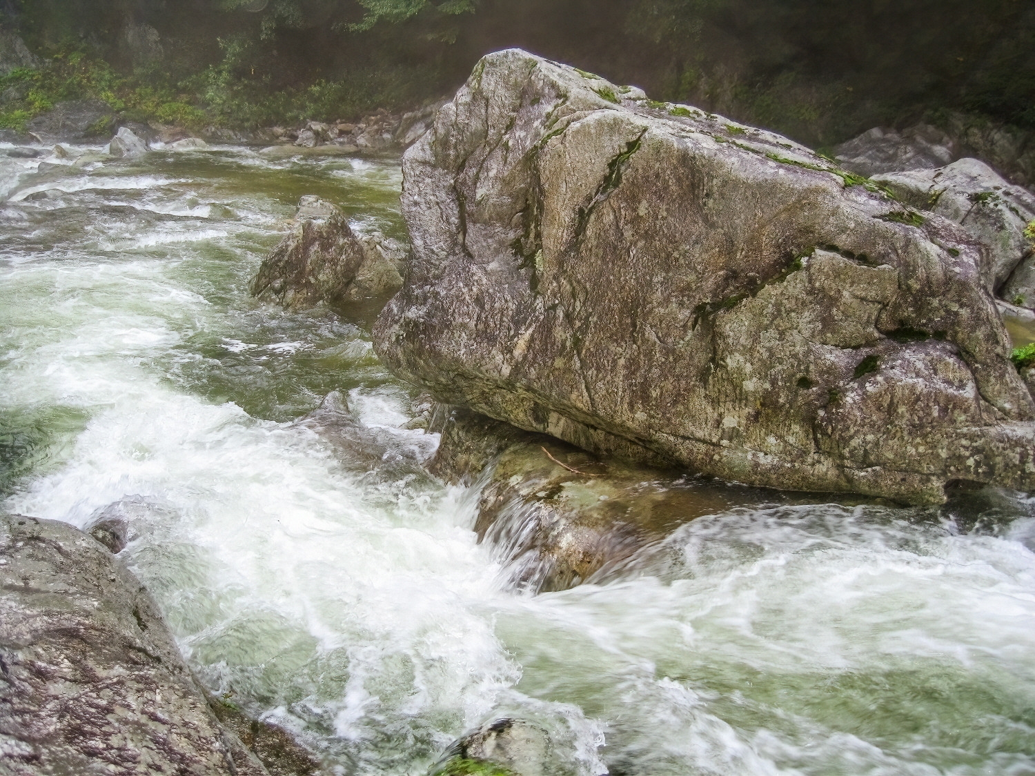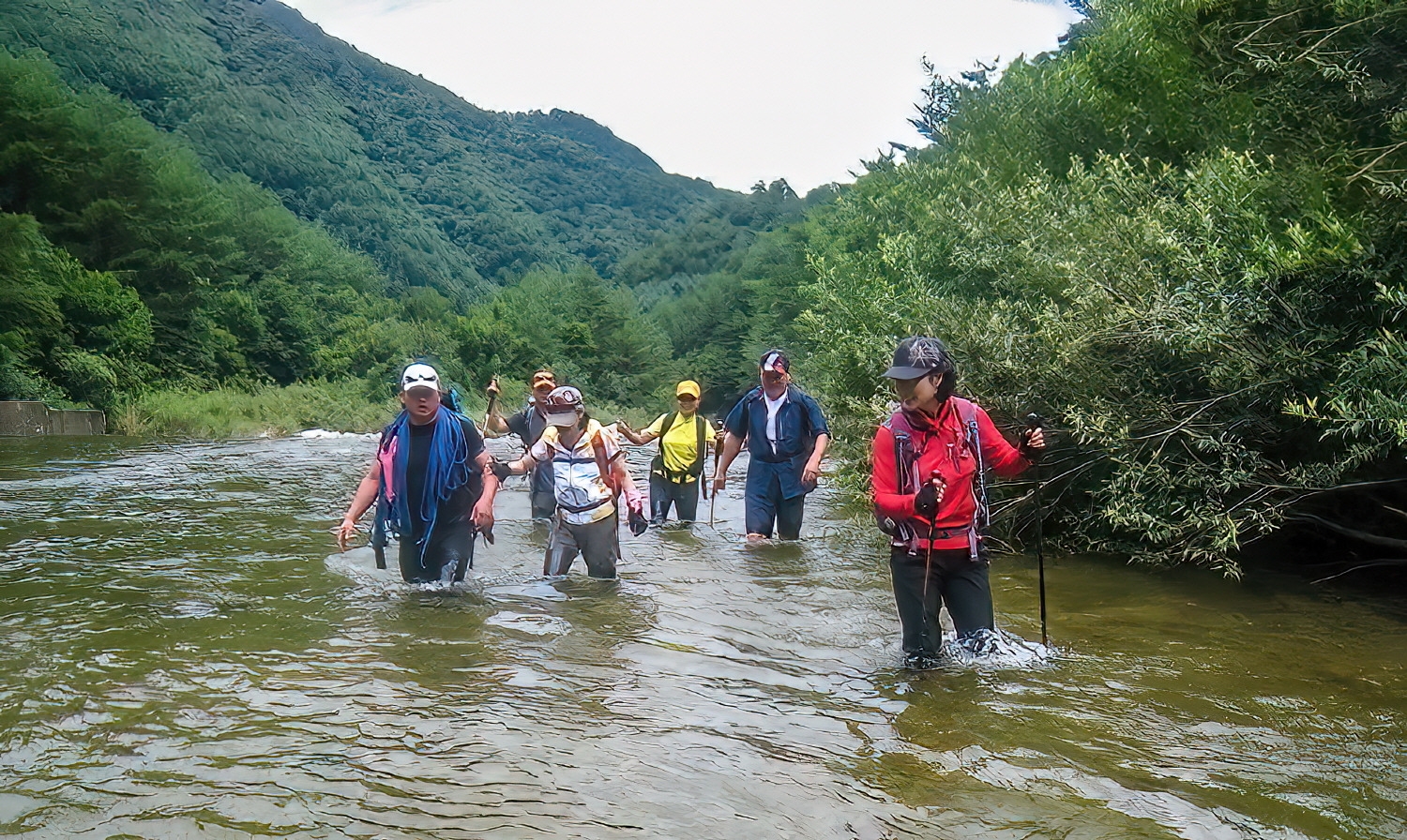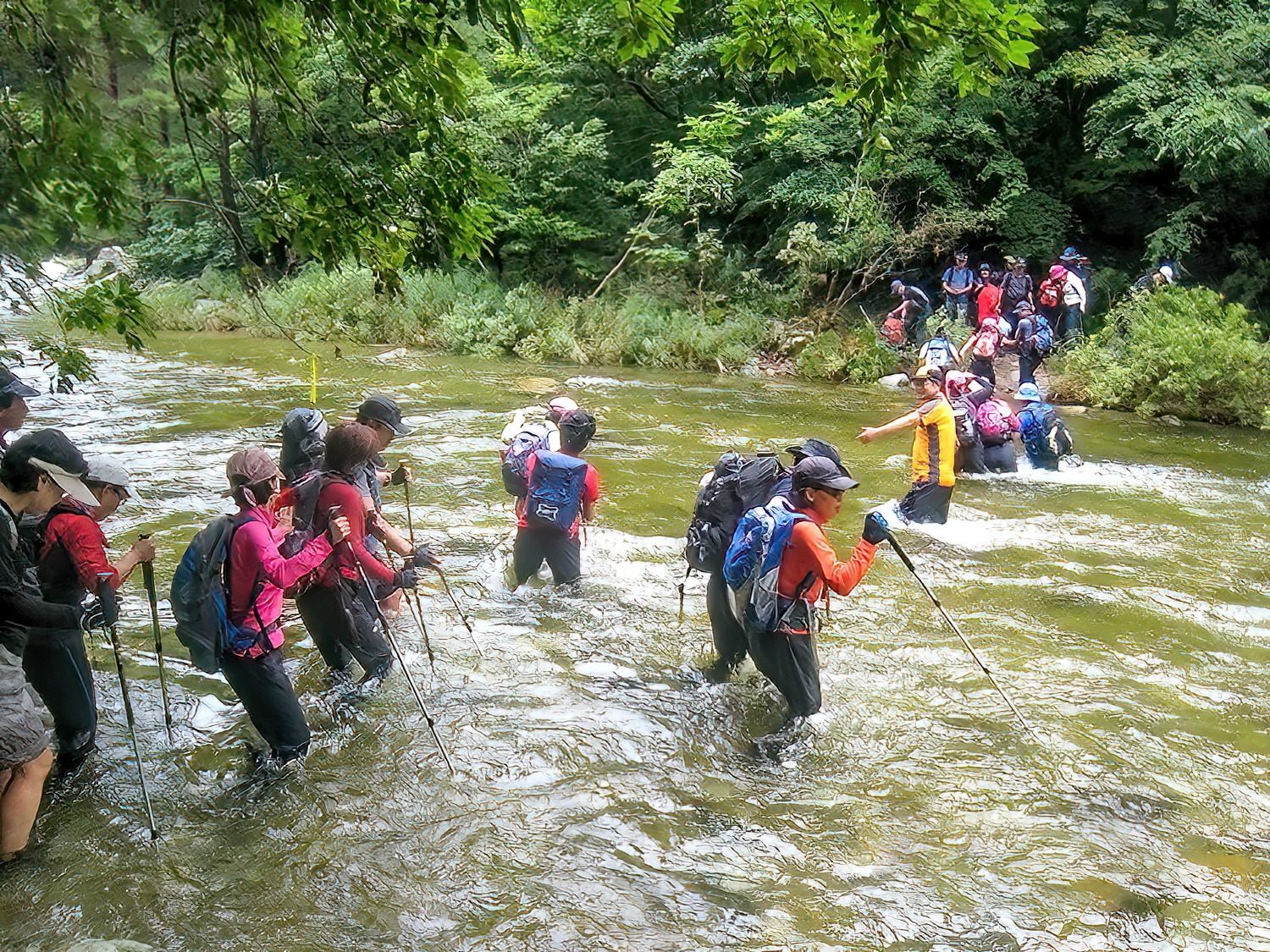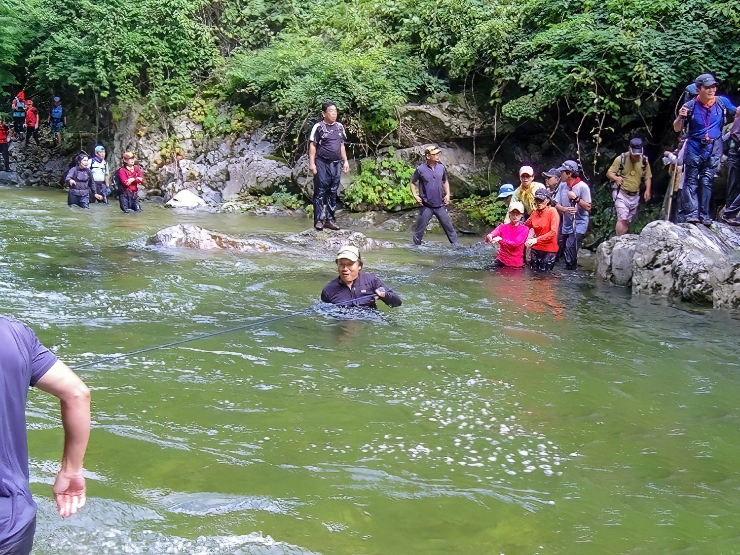 바위에 부딪칠 경우 매우 위험하긴 하지만 급류속으로 다이빙하거나 헤엄치는 산우도 있고, 가슴 위까지 빠지는 깊은 계곡물을 건너는 곳도 있다. 이런 곳은 물살도 제법 세므로 물깊이 및 물살세기에 따라서는 로프를 연결하여 안전을 도모해야 할 경우도 적지않다.(글,사진/임윤식)