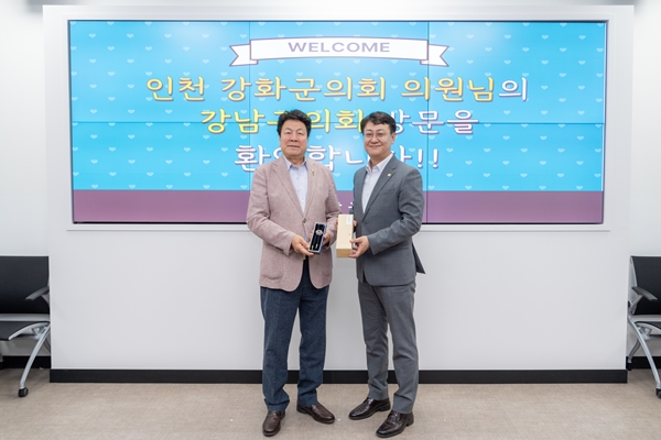 [아유경제=조현우 기자] 강남구의회(의장 이호귀)는 지난 10일 강남구의회를 방문한 인천 강화군의회와 교류 및 협력 강화를 위한 간담회를 가졌다.