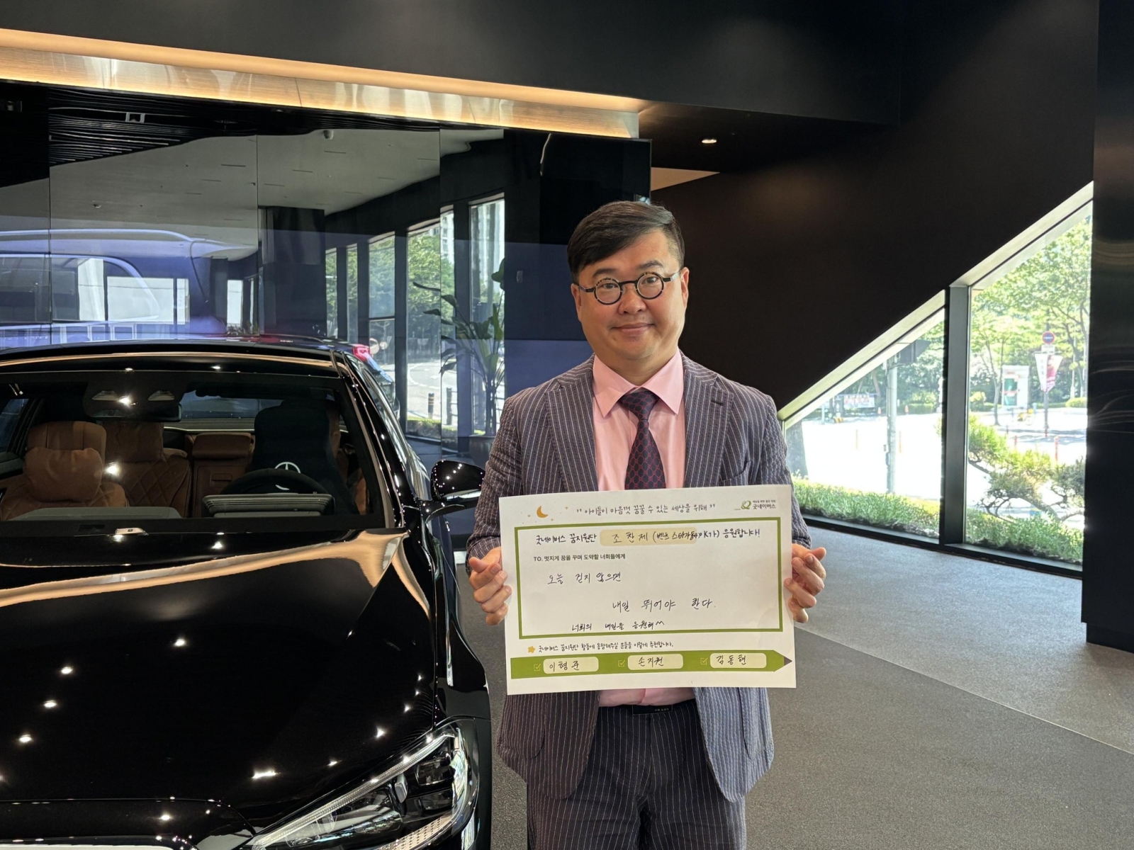 [사진 1] 사진은 ㈜스타자동차 조찬제이사가 꿈응원메시지를 작성한 모습. 끝.