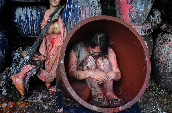 항아리들이 부서지며 지르는 비명, 파편, 동영상이 제격이지만.... 아하 지난 5일 쩍벌천박 페인팅누드퍼포 때 깨부수었어야 되는데....
