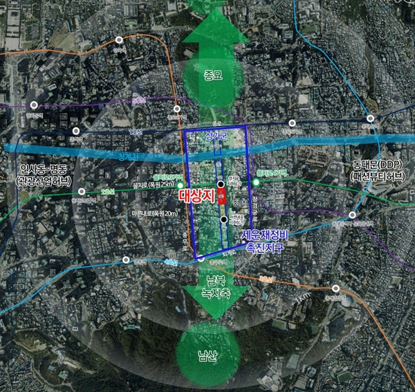 특히 이번 사업은 시가 2022년 4월 발표한 도심 내 고층 빌딩과 나무숲이 조화를 이루는 `녹지생태도심` 구현을 위해 고밀 복합 개발과 충분한 녹지공간을 확보하는 내용을 골자로 하는 `녹지생태도심 재창조 전략`의 핵심 사업이다. 세운상가군을 단계적으로 철거하고 그 자리에 약 5만 ㎡의 대규모 도심공원을 조성해, 북악산에서 종묘와 남산을 잇는 도심 녹지축을 완성하고 시민들에게 쾌적한 휴식 공간을 제공하는 것이 목표다.