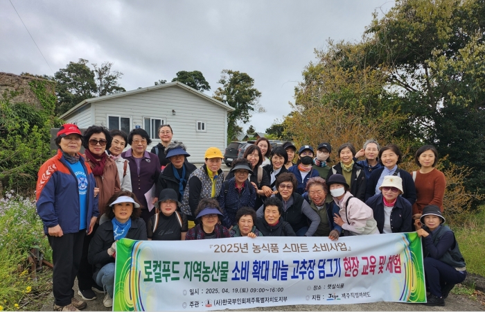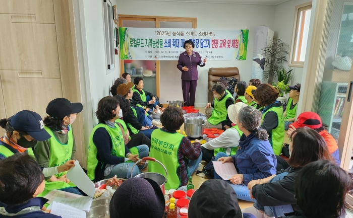 2025년 4월 19일(토)09:30 햇살식품에서 제주특별자치도 지원 사)한국부인회제주특별자치도지부(고순생)주관으로 『로컬푸드 지역농산물 소비 확대』“마늘 고추장 담그기” 현장 교육 및 체험“ 을 도민 30명 대상 실시했다.