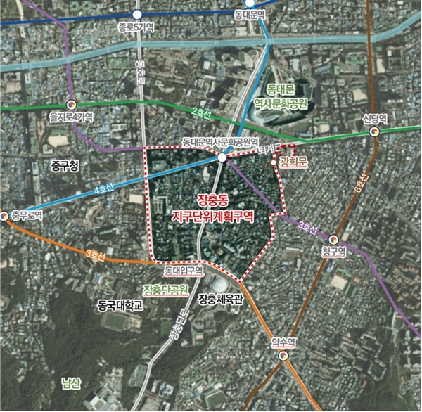 대상지는 중구 광희동ㆍ장충동ㆍ신당동 일원 40만2328㎡로 지하철 2ㆍ4ㆍ5호선 환승역인 동대문역사문화공원역, 3호선 동대입구역과 인접해 대중교통 이용이 편리하며, 주변에 DDP와 장충단공원 등 다양한 문화ㆍ공원시설이 입지한 곳이다. 숙박업소와 전통시장, 음식점 등이 밀집해 활발한 상권을 이루는 반면, 이면부에는 저층 주거지가 혼재돼 다양한 기능이 복합돼 있다.