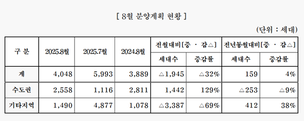 [아유경제_부동산] 중견주택업체, 올해 8월 4048가구 분양… 전년 동월비 4% 증가