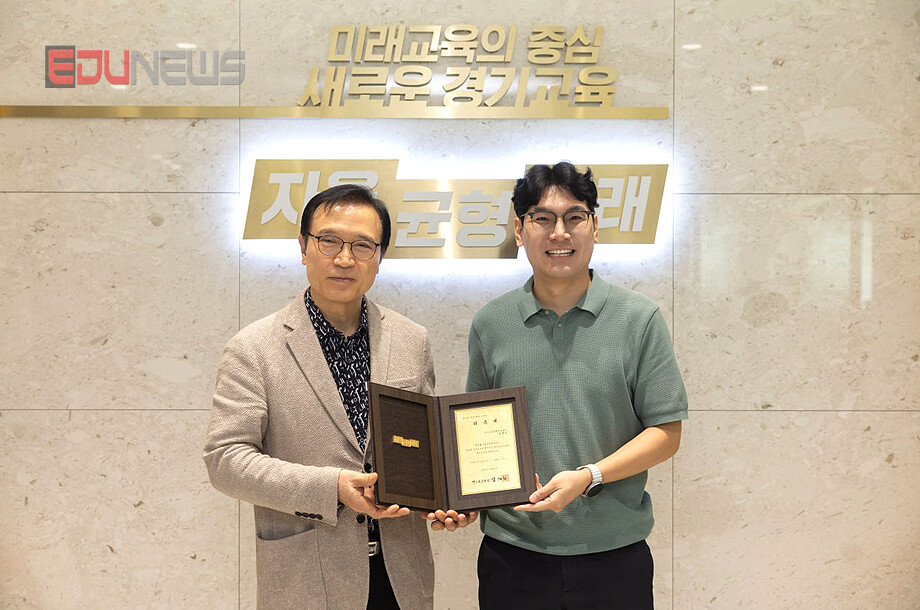 경기미래교육을 위해 ‘찐 애정’으로 뭉친 임태희 교육감과 교사 송성근-[에듀포토]