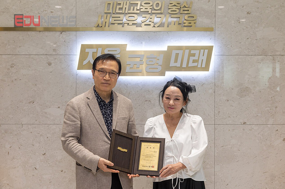 [에듀뉴스] 경기교육청(교육감 임태희)이 8일 대한민국 교육의 중심, 경기미래교육을 알리는 데 힘쓸 2025년 신규 홍보대사를 위촉했으며 사진은 임태희 교육감과 국악인 김영임이 기념 촬영을 하는 모습이다.