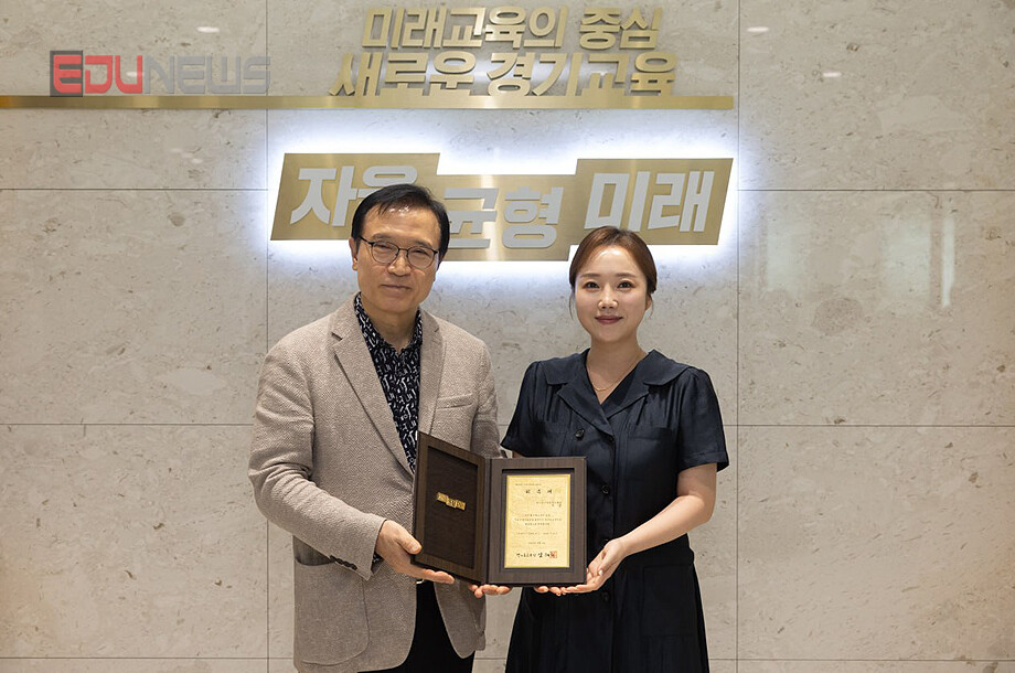 [에듀뉴스] 경기교육청(교육감 임태희)이 8일 대한민국 교육의 중심, 경기미래교육을 알리는 데 힘쓸 2025년 신규 홍보대사를 위촉했으며 사진은 임태희 교육감과 국악인 방글이 기념 촬영을 하는 모습이다.