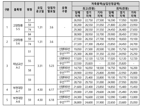 [아유경제=조명의 기자] 한국토지주택공사(LH)는 공공분양 일반공급 당첨자의 청약저축 납입 인정액 상ㆍ하한선을 공개한다고 이달 12일 밝혔다.