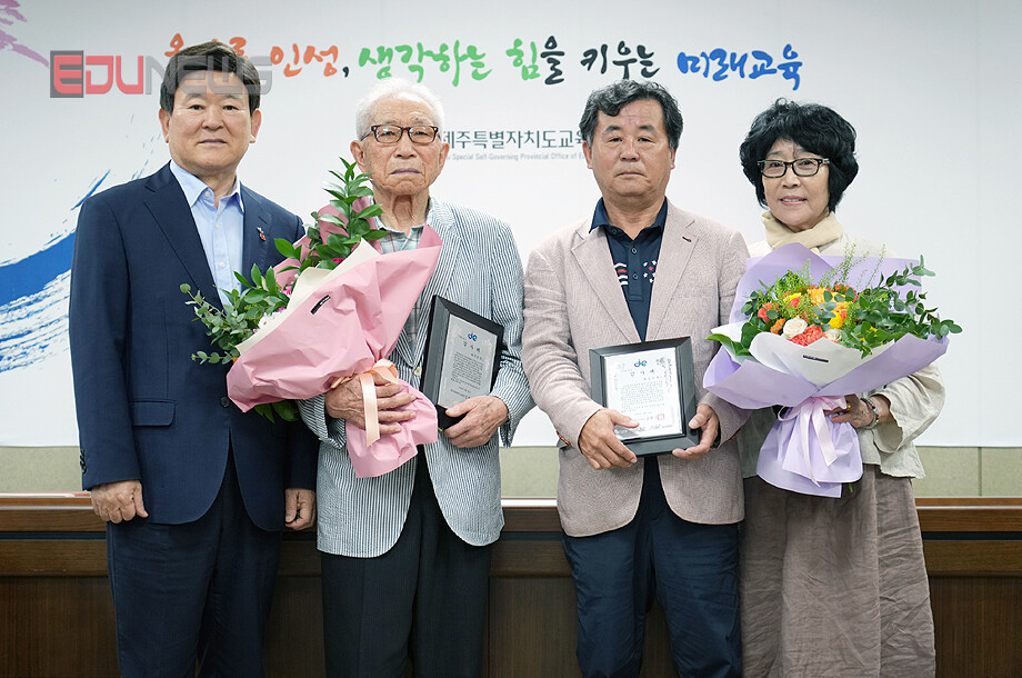 [에듀뉴스] 김광수 제주특별자치도교육감은 지난 12일 도교육청 상황실에서 제주교육 발전에 기여한 재일제주인 고(故) 강성홍 선생과 고(故) 양종찬 선생에게 교육감 감사패를 수여했다.