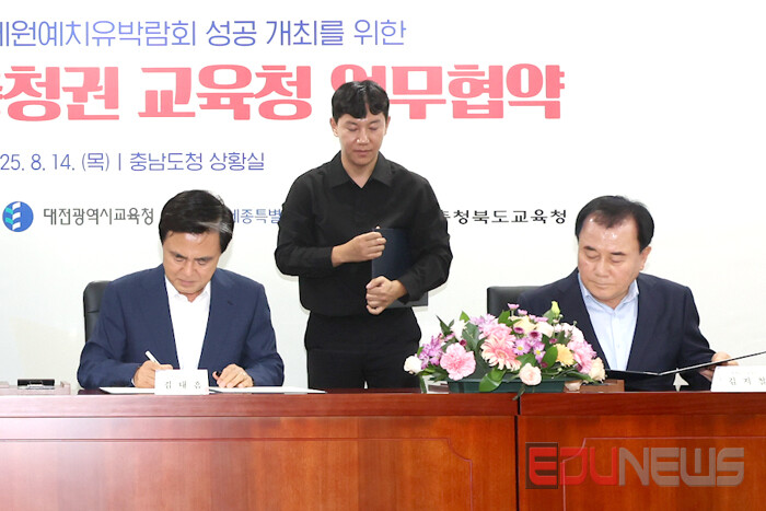 [에듀뉴스] 대전광역시교육청은 8월 14일 충남도청과 2026년 4월 25일~5월 24일에 개최되는 ‘태안국제원예치유박람회’를 계기로 학생들의 현장체험학습 활성화 기회와 박람회의 성공적 개최를 위한 업무협약을 체결했다고 밝혔다.