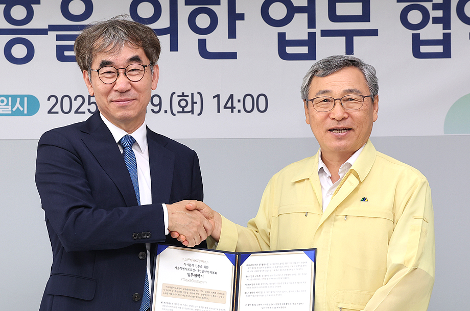 [에듀뉴스] 정근식 서울특별시교육감과 윤철호 대한출판문화협회장이 19일 오후 서울교육청에서 독서문화 진흥을 위한 업무협약을 체결한 뒤 기념촬영하고 있다.