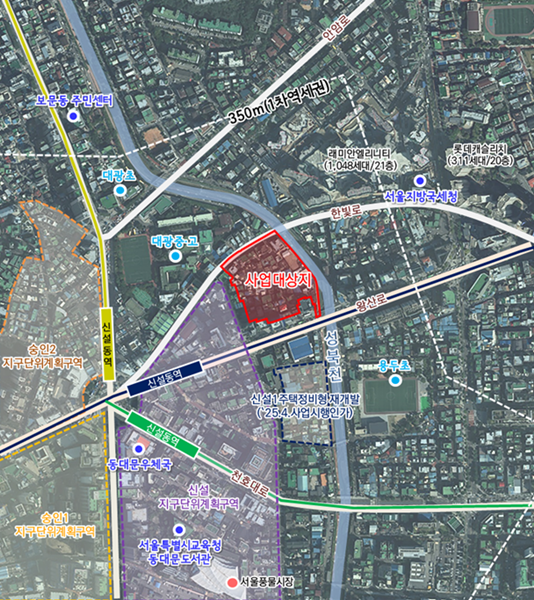 정비계획은 신설동역세권 지역의 주거환경과 도시 경관을 개선하기 위해 `도심 속 보행 중심의 수변친화형 주거 복합 단지 조성`을 목표로 수립됐다.