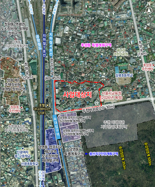 [아유경제=조명의 기자] 서울 용산구 지하철 4호선 숙대입구역세권에 지상 최고 40층 아파트 870가구가 들어선다.
