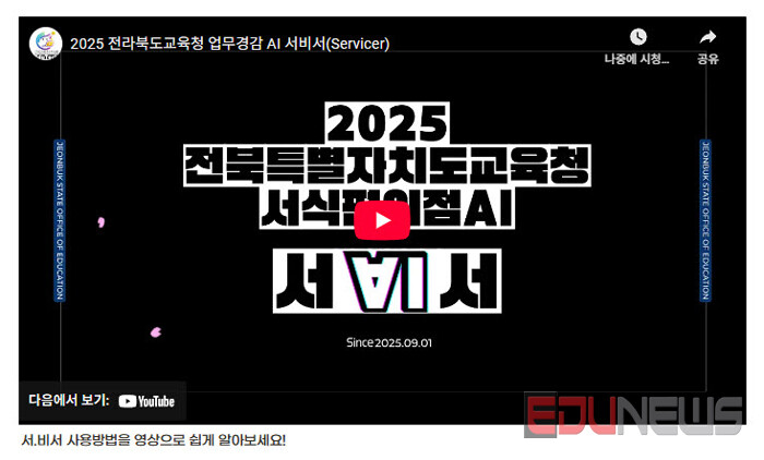 [에듀뉴스] 전북특별자치도교육청은 AI 기반 교원 업무지원도구 ‘서·비서’를 9월부터 본격 운영에 들어갔다고 8일 밝혔다.