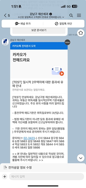 알림톡 발송 대상은 ▲일시적 2주택자 ▲생애 최초 주택 구입자 ▲무상취득자 ▲부동산 상속자 등 네 가지 유형이다.