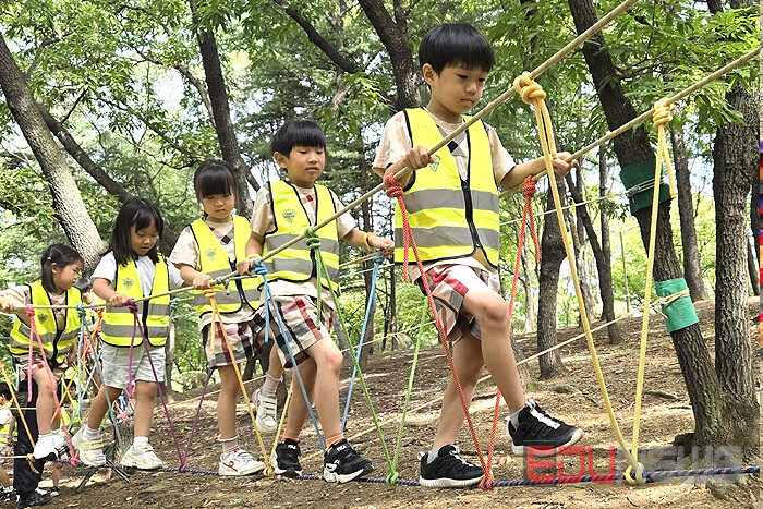 체험은 ‘숲 체험 및 숲 밧줄 놀이’가 운영된다. 아이들은 자연을 관찰하고 탐구하며, 숲에 설치된 밧줄을 활용해 균형 감각과 협동심을 기를 수 있다.