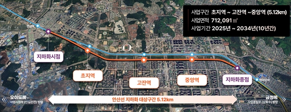 안산선 지하화 통합개발사업은 안산시 초지역에서 중앙역에 이르는 약 5.12㎞ 구간을 지하화하고 상부를 개발하는 사업이다. 지난 2월 19일 국토교통부의 선도사업으로 선정됐으며, 올해 12월 발표 예정인 `철도지하화 통합개발 종합계획` 수립 전 선제적인 사업 추진이 가능하다.