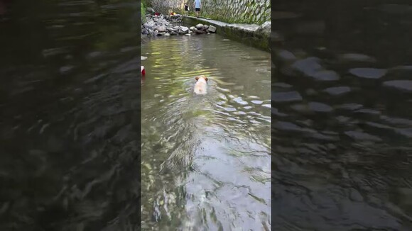 [에듀뉴스] 경기도 양주시 장흥면에 위치한 ‘장흥 도깨비 방망이’에서 하나(견종 웰시코기, 나이 5살)와 엄마가 물놀이를 하면서 무더위를 식히고 있으며 하나는 이날 처음 수영을 배웠지만 남다른 수영실력으로 주변 사람들에게 미소를 짖게 했다.