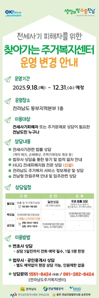 [아유경제=조명의 기자] 전남은 동부지역본부에서 운영 중인 전세사기 피해상담을 확대 운영한다고 이달 19일 밝혔다.