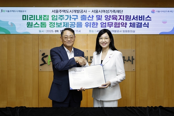 [아유경제=조명의 기자] 서울주택도시개발공사(SH)는 이달 19일 서울시여성가족재단과 `미리내집` 입주민을 대상으로 출산ㆍ양육 지원 서비스 제공을 위한 업무협약(MOU)을 체결했다고 최근 밝혔다.